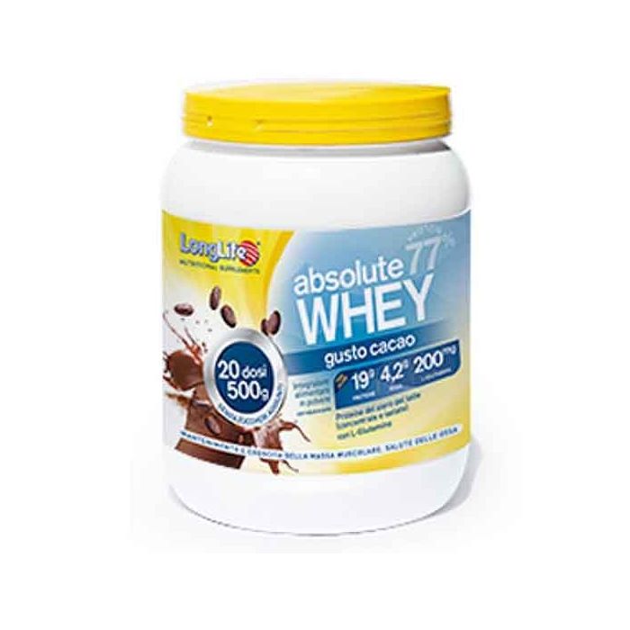 Con l'alimentazione non si è mai certi di apportare il giusto quantitativo, ogni giorno affidati ad un integratore Absolute Whey Longlife al piacevole gusto di cacao derivato dalle proteine del siero di latte.
