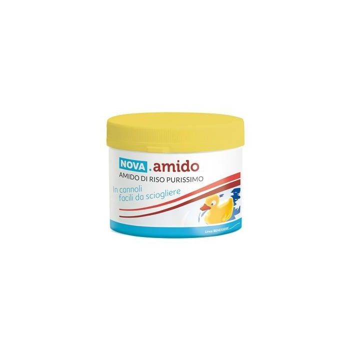 Sciogli nell'acqua del bagnetto l'Amido di riso della ditta Nova Amido, amido di riso purissimo, in cannoli facili da sciogliere per trattare la pelle delicata ed irritata del tuo bimbo in modo naturale e sicuro.