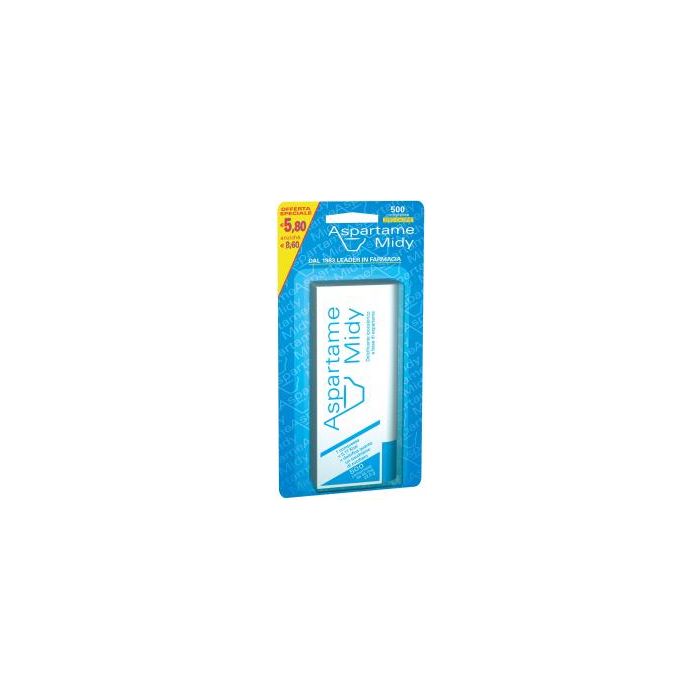 Aspartame Midy, dal buon sapore privo di retrogusto, sostituisce lo zucchero nella dolcificazione di caffè, tè o altre bevande. Aspartame Midy leader dal 1983, è indicato nelle diete ipocaloriche, 1 compressa contiene 18 mg di aspartame e dolcifica quanto un cucchiaino di zucchero. Nella pratica confezione in dispenser: le tue compresse a portata di mano; senza calorie, zucchero, saccarina.