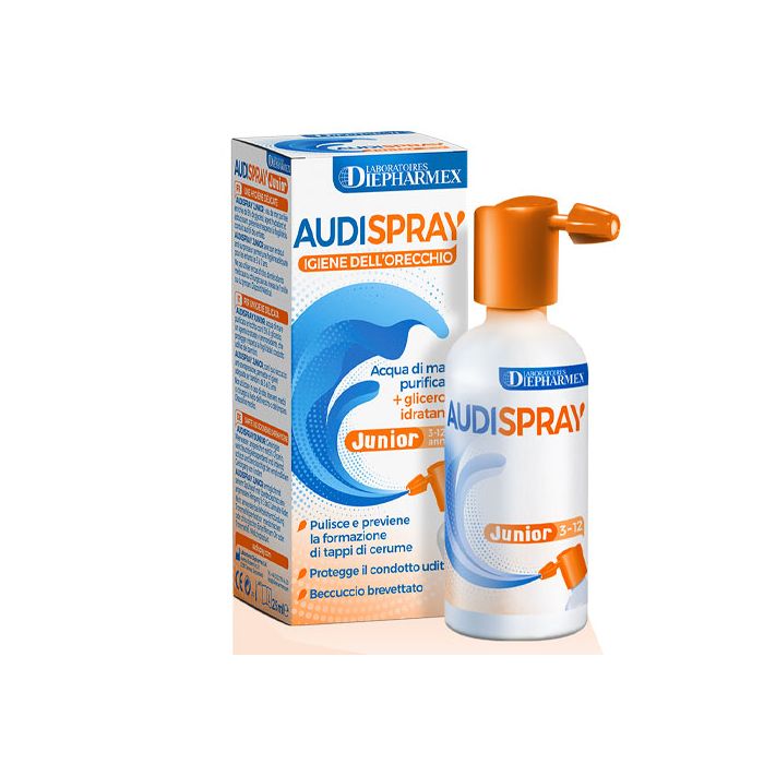 Audispray Junior è un Dispositivo Medico a base di Acqua di mare, microbiologicamente controllata, e Glicerolo. Grazie alla sua formulazione, questo spray per l'igiene dell'orecchio rispetta la pelle del condotto uditivo, con un effetto finale protettivo. Inoltre il beccuccio è brevettato ed è stato ideato per erogare uno spruzzo molto delicato, a bassissima pressone.