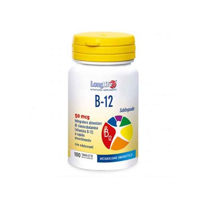 B-12 è un integratore alimentare a base di cianocobalamina (vitamina B-12). La vitamina B12 contribuisce fisiologicamente al normale metabolismo energetico, al normale metabolismo dell’omocisteina e al funzionamento del sistema nervoso, contribuendo alla riduzione di stanchezza e affaticamento.
