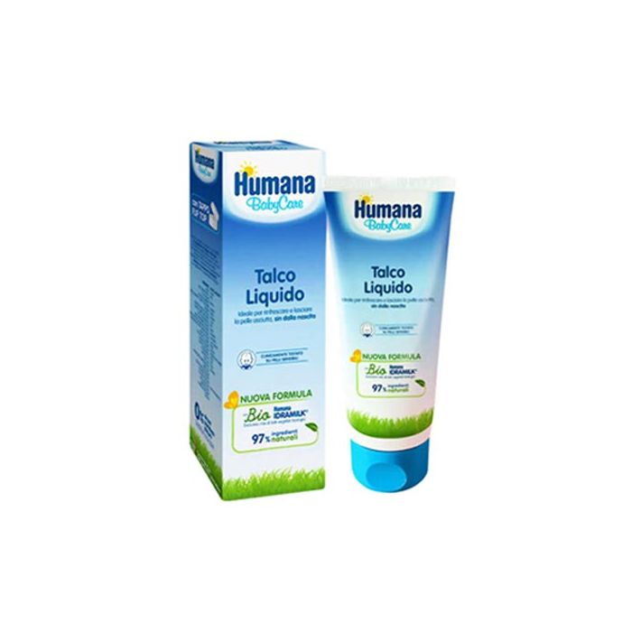 Il Talco liquido Humana rinfresca e lascia la pelle asciutta.