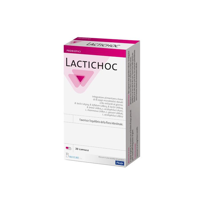Ti senti spesso gonfio, hai problemi di irregolarità o semplicemente vuoi migliorare il tuo benessere generale? Se sei alla ricerca di un prodotto di alta qualità, sicuro ed efficace, Lactichoc è la scelta ideale per te: integratore di fermenti lattici formulato a base di 8 ceppi microbiotici dosati a 80 miliardi al giorno. E' progettato per supportare la tua flora intestinale e promuovere una digestione sana.