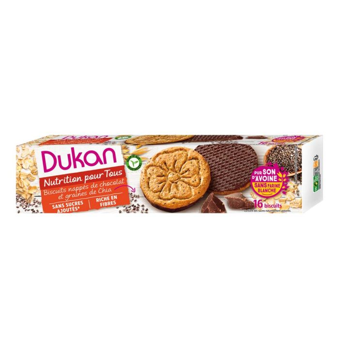 Biscotti di crusca d'avena con semi di chia ricoperti da uno strato di goloso cioccolato fondente.