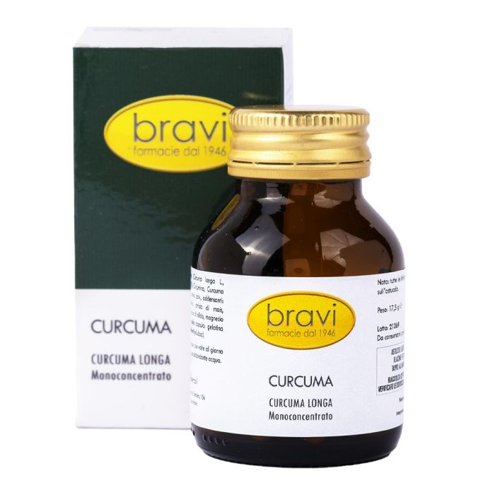 Dalla polvere giallo intensa della radice, si ottiene il Monoconcentrato di Curcuma, firmato Bravi Farmacie. Esso vanta numerose proprietà:
