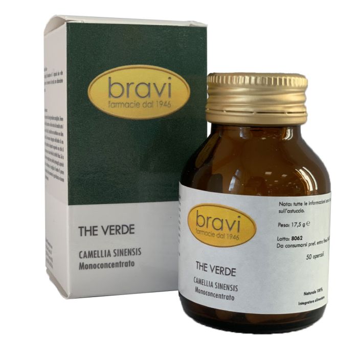 Nell'integratore The Verde Monoconcentrato di Bravi in una capsula si trovano tutte le proprietà benefiche del tè, permettendo una presenza tale di attivi (alcaloidi, tannini, flavonoidi) da garantirne l'effetto.