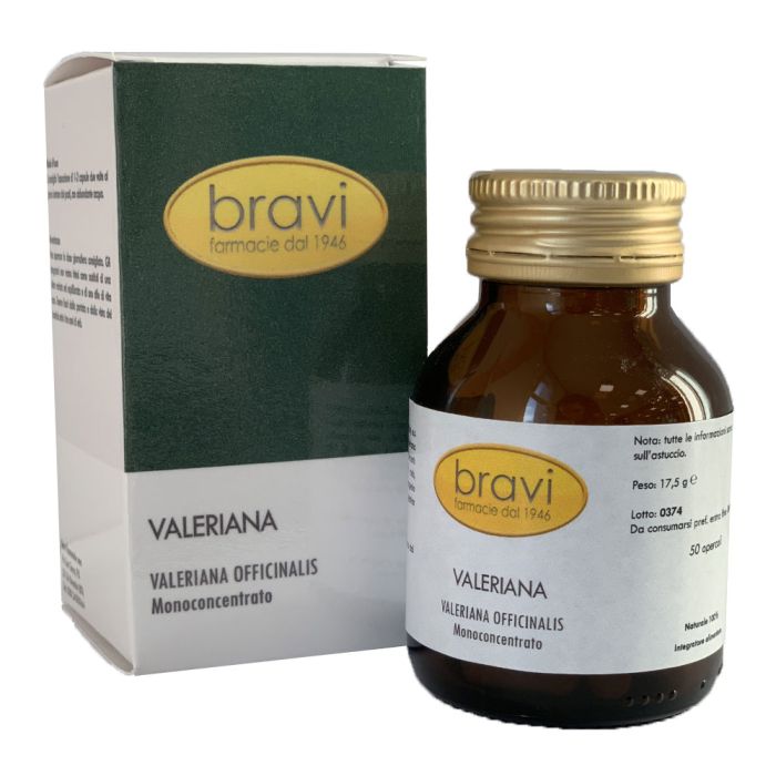 Valeriana (Valeriana officinalis L., radice) e.s. tit. 0,8% Acidi valerenici, Valeriana (Valeriana officinalis L., radice) polv., addensanti: cellulosa microcristallina, amido di mais, antiagglomeranti: biossido di silicio, magnesio stearato, costituente della capsula: gelatina vegetale (idrossipropilmetilcellulosa).