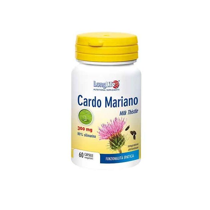 Cardo Mariano 80 % della marca Long Life è un integratore con cardo mariano, titolato al 80% in silimarina.