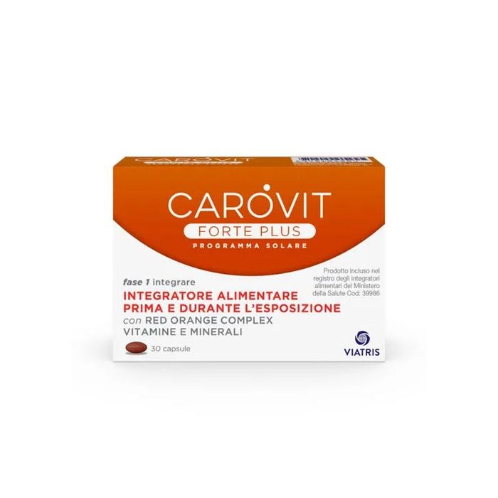 Carovit Forte Plus è un integratore alimentare utile prima e durante l'esposizione ai raggi solari.