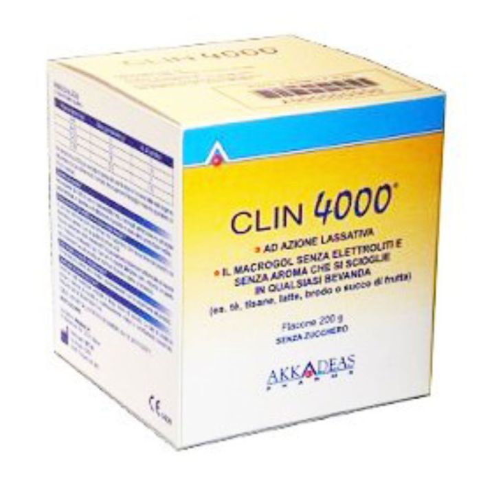 Clin 4000 Polvere è un Dispositivo medico. Nello specifico si tratta di un prodotto lassativo in polvere per soluzione orale a base di Macrogol 4000.