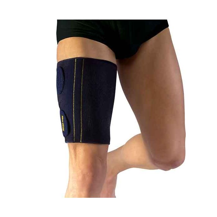 è dotato di un pressore interno, applicato a velcro, da posizionare sul punto di contrattura, stiramento o strappo del muscolo quadricipite (o bicipite femorale), al fine di esercitare una pressione costante sulle fibre muscolari lese per alleviare il dolore e favorirne la guarigione; al bisogno può essere rimosso