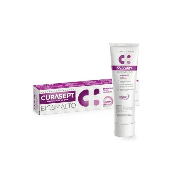 Usa il dentifricio Biosmalto per denti sensibili in combinazione con il Colluttorio Biosmalto Denti Sensibili di Curasept: lo trovi disponibile sul nostro Shop.