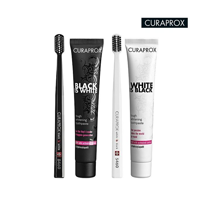 Opta per i colori che non passano mai di moda e scoppierà la rivoluzione nella tua bocca: il carbone attivo che conferisce il NERO al dentifricio CURAPROX rimuove la patina che ha spento il tuo sorriso.