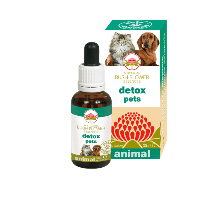 Scegli l'essenza combinata di Fiori Australiani di Billy Goat Plum, Bottlebrush, Bush Iris, Dagger Hakea, Dog Rose, Green Essence, Spinfex, Wild Potato Bush per detossinare il tuo animale.