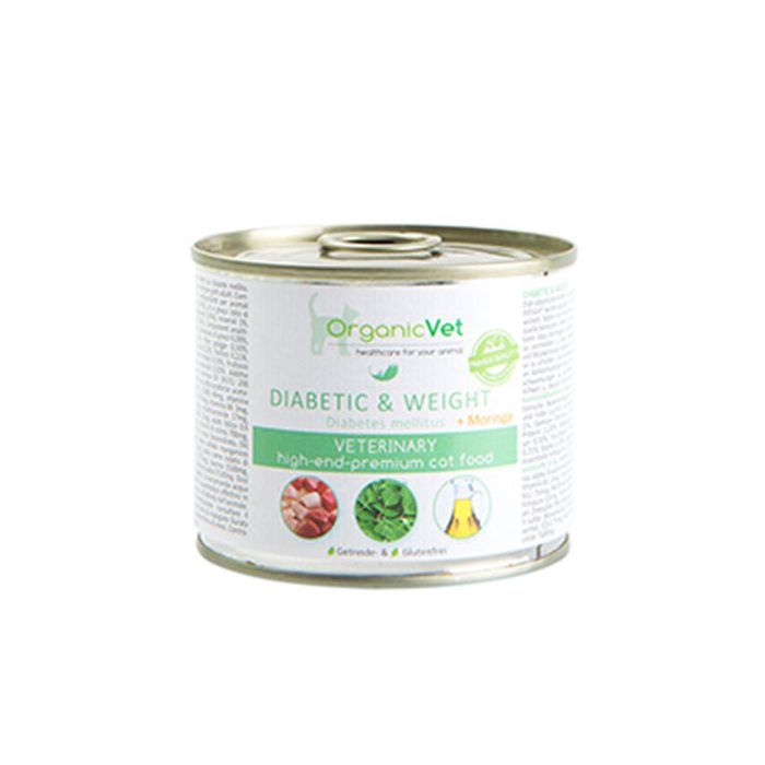 Pollame e manzo per il 69%, olio di salmone e girasole per il 0,50% ed infine minerali 1% e verdure (moringa) fanno bene a quei gatti che hanno problemi di fluttuzioni dei livelli di glucosio nel sangue e sono in sovrappeso per tale ragione.