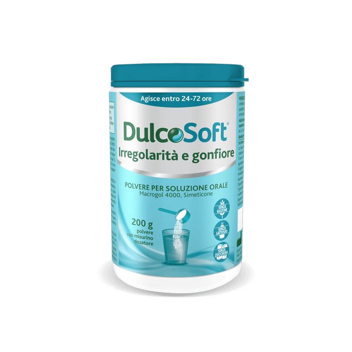 Lo hai trovato! Dulcosoft Irregolarità e Gonfiore è una polvere per preparare una soluzione orale che agisce in 24-72 ore.