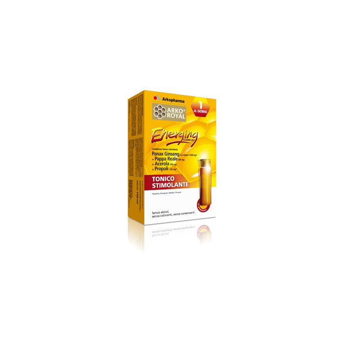 ENERGING Complex è un complesso stimolante a base di Ginseng, Pappa Reale, Acerola e Propoli.