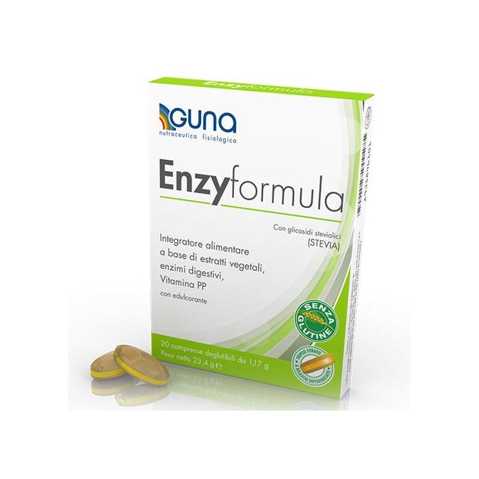 Nel formulare questo integratore, Guna ha pensato a tutto: le compresse di EnzyFormula sono a rilascio differenziato, cioè la parte più esterna rilascia gli enzimi nello stomaco, mentre il nucleo centrale andrà a sciogliersi nell'intestino. Tutto ciò permette di ottimizzare il processo digestivo, in tutte le fasi che lo coinvolgono nel tratto gastro-intestinale, per poter digerire qualsiasi tipo di cibo: zuccheri complessi, grassi, proteine o fibre.