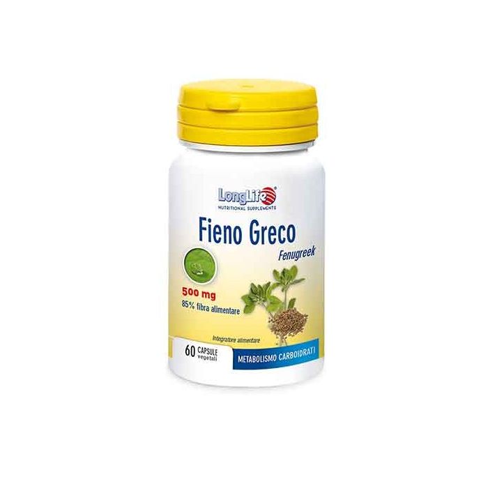 Fieno Greco 85 % 60 cps della marca Long Life è un integratore con fieno greco, titolato all'85% in fibra alimentare.