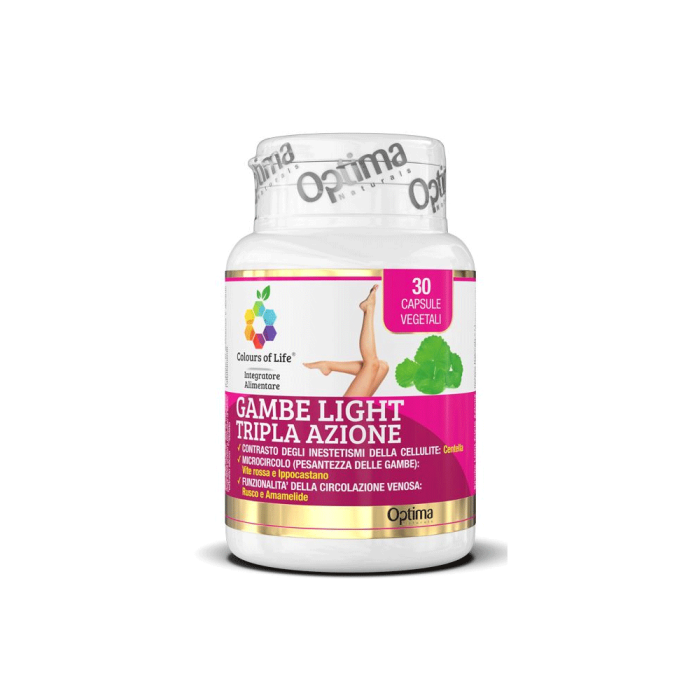 Soffri di gambe pesanti, gonfiore e cellulite? Gambe Light Tripla Azione di Optima Naturals è l'integratore alimentare che combatte questi inestetismi in modo efficace e completo, grazie alla sua formulazione unica a base di fitocomplessi sinergici.