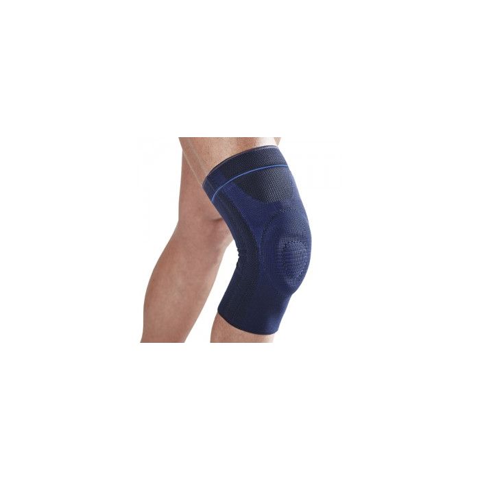 E' una ginocchiera ortopedica con steccaggio laterale per la stabilizzazione dell’articolazione; ha un anello in silicone di stabilizzazione e centraggio della rotula