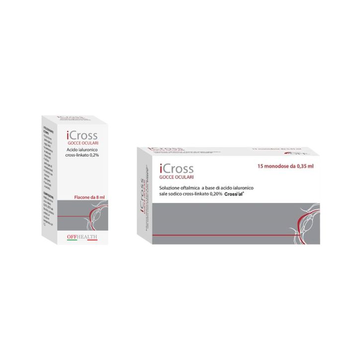 Cosa ha di caratteristico questo collirio? La presenza, all'interno della sua formulazione, dell'Acido ialuronico cross-linkato. Si tratta di una tecnologia che unisce più molecole di ialuronico per ottenere una molecola di maggior peso molecolare. Questo garantisce al collirio ICross: