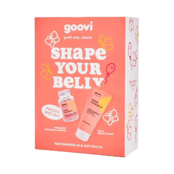 Per un trattamento completo e rigoroso se soffri di problemi di gonfiore o ritenzione idrica, prova la combo integratore + crema Shape Your belly di Goovi.