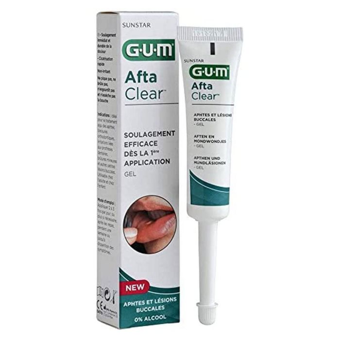 - Il gel GUM AftaClear è particolarmente indicato per il trattamento acuto di afte, abrasioni ortodontiche, irritazioni della protesi dentaria, lievi ustioni o altre piccole ferite in bocca.