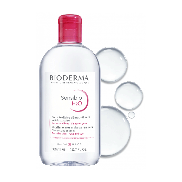 H2O Soluzione micellare della linea Sensibio di Bioderma è ;una soluzione micellare che deterge con la massima delicatezza viso e occhi ed elimina anche il trucco resistente all'acqua.