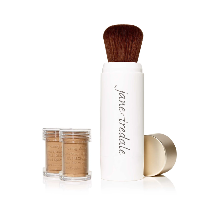 Prova il fondotinta illuminante con proptezione solare contenente un pennello Pennello ricaricabile all-in-one per Amazing Base® Loose Mineral Powder.