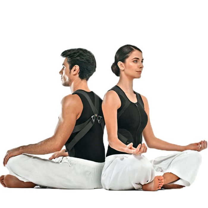 Non lavora per noi, ma stimola il nostro corpo ad adottare l'estensione del dorso invece che la flessione. Quando lo decidi tu: vi sono degli inserti in velour per ancorare a strappo i tiranti regolabili (in quatro punti). La maglia è in tessuto contenitivo, elasticizzato ma traspirante e confortevole. Tra l'altro è wash&wear (antipiega) e made in italy.