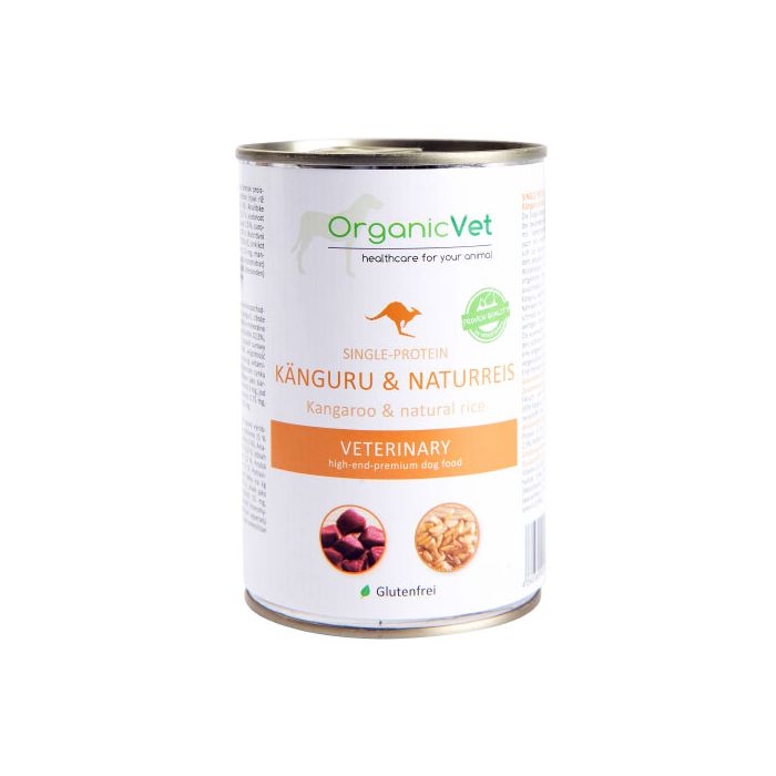 In questa scatoletta da 400 g la carne di CANGURO (65%) e il facile da digerire RISO NATURALE (5%) aiuteranno il tuo cane a star bene, come dovrebbe essere ogni volta che ci si nutre!