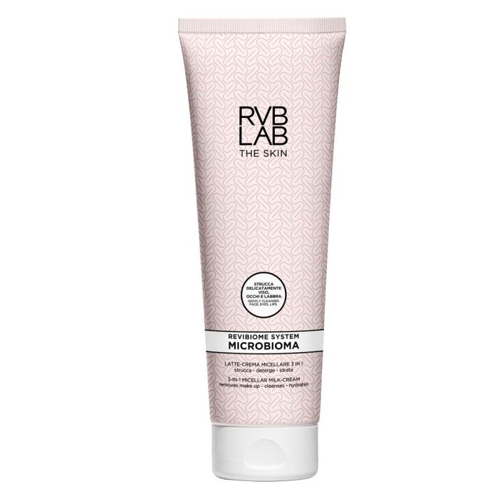 Viso, occhi e labbra vengono detersi da impurità e trucco (anche waterproof) con un solo gesto. Scopri la nuova detersione Microbioma di Rvb Lab.