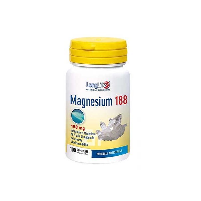 Il Magnesio 188 di Longlife è un integratore di questo sale minerale antistress, la cui dose ridotta è ideale per adolescenti o persone più sensibili a questo attivo.