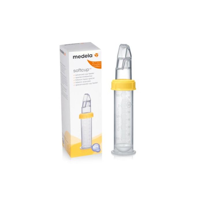 Per i neonati con difficoltà di suzione, c'è il biberon soft cup di Medela per la somministrazione del latte materno.