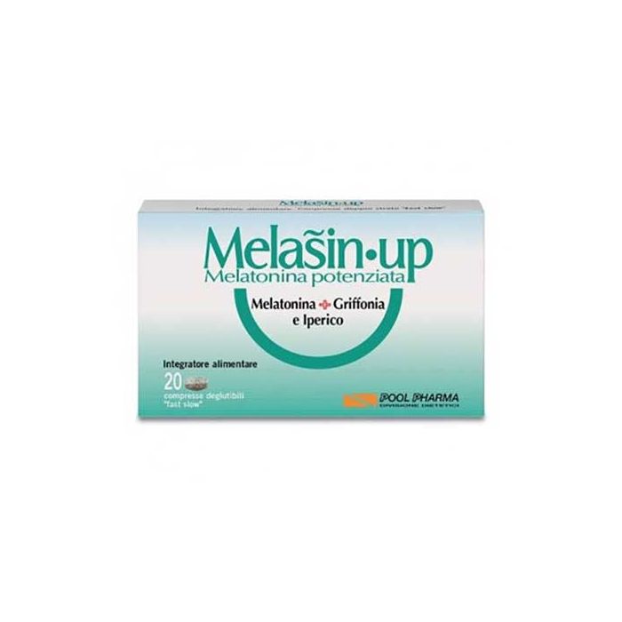 MELASIN UP Melatonina Potenziata di Pool Pharma è un integratore con melatonina, ideale per favorire il sonno ed il riposo sereno. Confezione da 60 compresse.