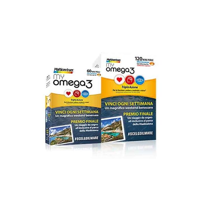 I preziosissimi Omega 3 EPA e DHA sono presenti nel nostro organismo e fondamentali per il suo benessere. Purtroppo il nostro corpo non ne produce in quantità sufficienti e dunque devono essrere integrati: sapevi che per mantenere in salute la capacità visiva, il buon funzionamento cerebrale e l'attività cardiaca bastano due mini perle di Multicentrum MyOmega3 al giorno?