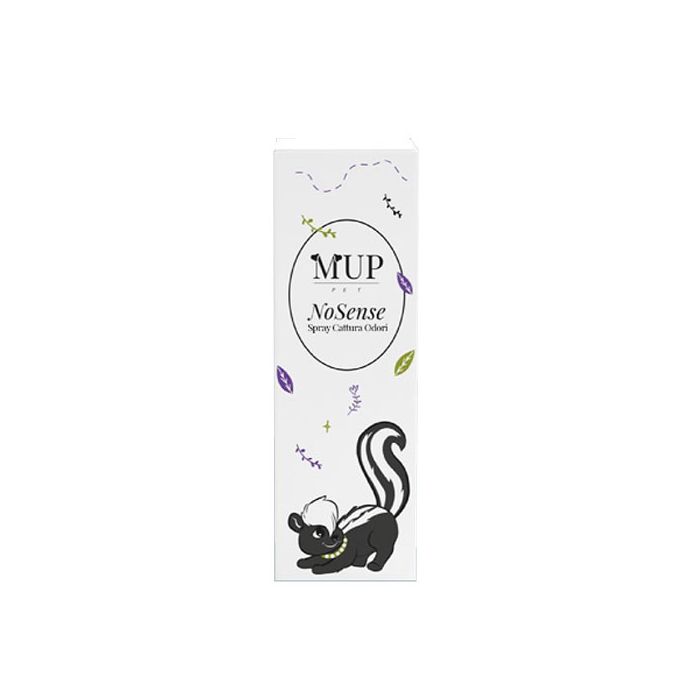 No Sense di Mup Pet ha un attivo cattura odori che elimina la puzza anche di fumo, sudore e cibo. Può essere usato negli ambienti chiusi, sulle superficie e cucce. Per di più è efficace anche sui tessuti e indumenti.