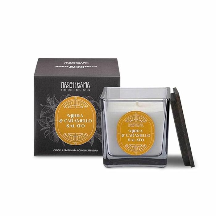 Regala un'atmosfera serena con note intime e misteriose al tuo ambiente con la candela profumata Mirra e Caramello salato di Nasoterapia.