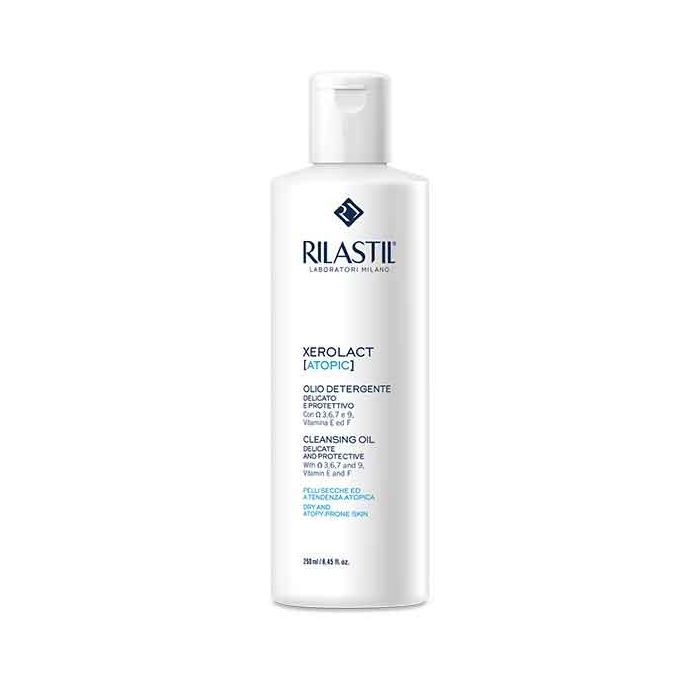 Cosa ti consigliamo? L'olio detergente XEROLACT (atopic) delicato e protettivo di RILASTIL, creato da una miscela di olii vegetali,acidi grassi come omega 3,6,7,9 e vitamina E.