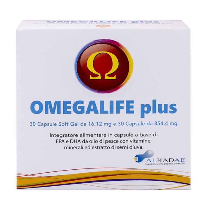 L'omega 3 (estratti dall'olio di pesce) dell' OMEGALIFE PLUS BIONUTRì è contenuto nelle capsule gialle, mentre nell'altra perla vi sono contenuti i minerali come il Selenio, il magnesio, il cromo, le vitamine ( B12, B6 Acido Folico, D3...) ed estratti di SEMI D'UVA (VITAFLAVAN).