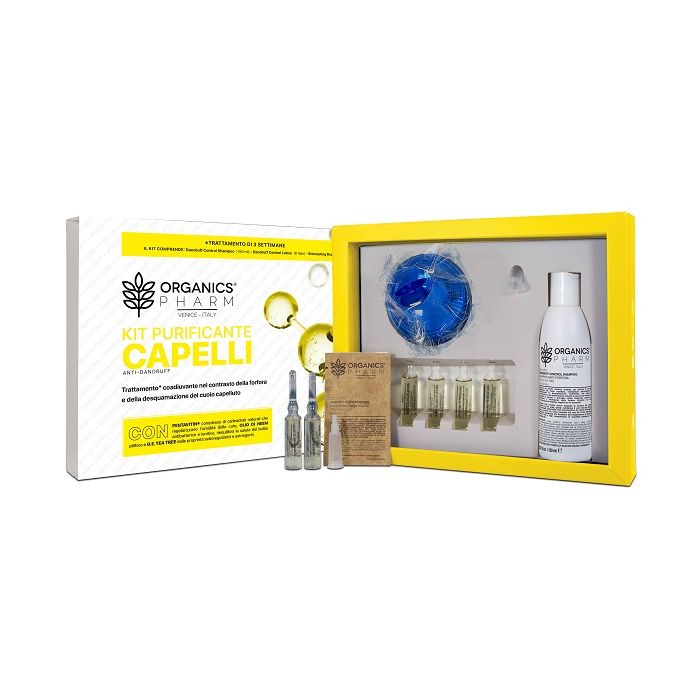 Dite addio alla forfora e al cuoio capelluto irritato con KIT Purificante Capelli, il trattamento d'urto intensivo di Organics Pharm.