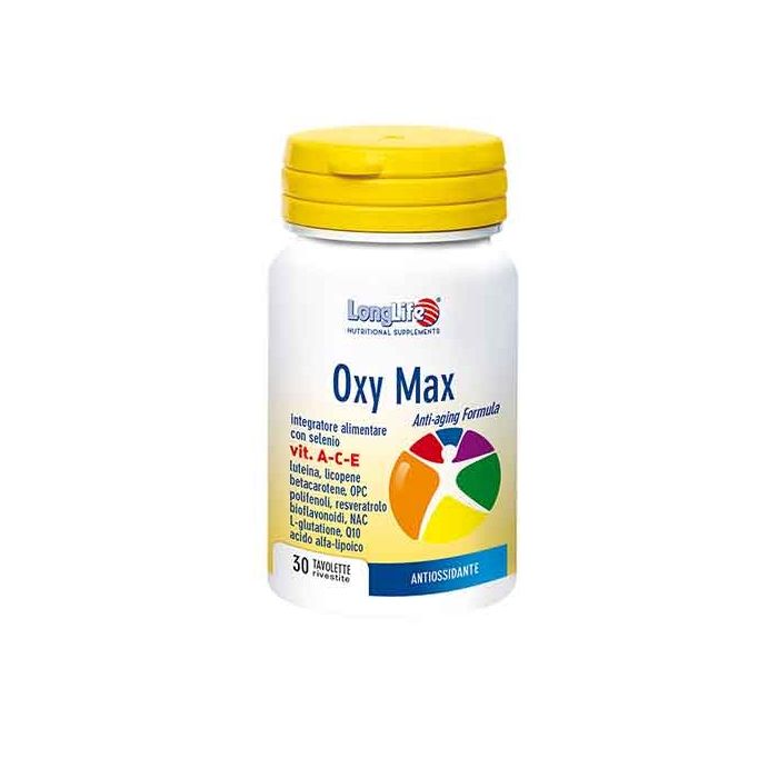 La "bomba nutrizionale" vera e propria OXY MAX A-C-E Longlife che potenzia le difese antiossidanti, proteggendo al contempo cuore, vista, pelle e cervello.Provalo!