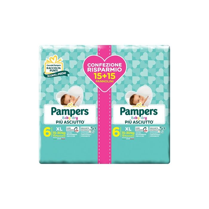 Si chiama ''più asciutto'' perché resta più asciutto fino a 12 ore. Te lo proponiamo in Bipack da 2x13 pannolini, in taglia XL per bimbi dai 15 ai 30 kg.