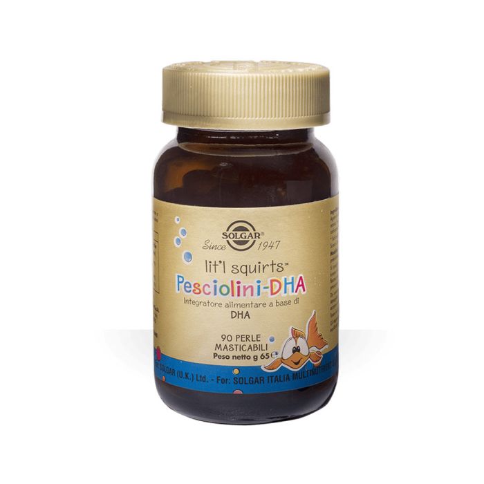 Integratore a base di olio di pesce con acidi grassi polinsaturi della serie Omega3 e Dha, scopri online Pesciolini Solgar