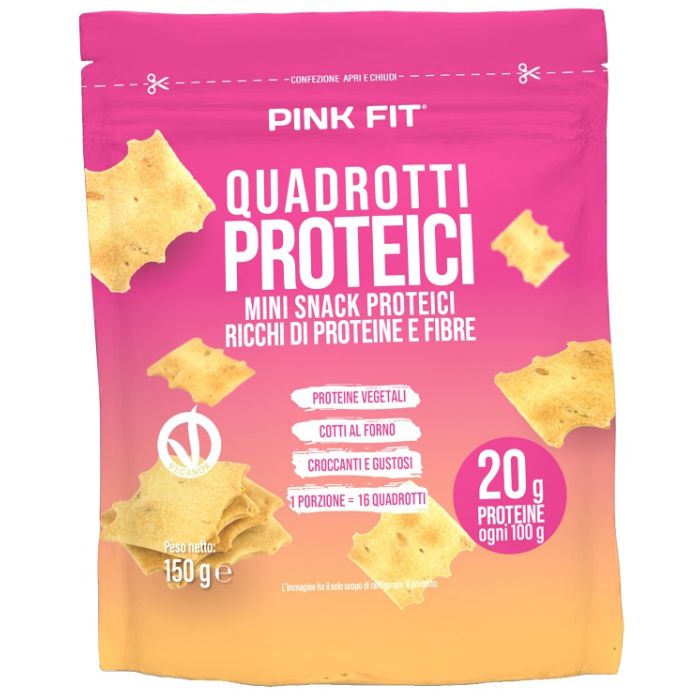 - Puoi accompagnare i Pink Fit Quadrotti Proteici con una porzione di verdura cruda o frutta fresca, oppure aggiungerli a insalate o vellutate per rendere i tuoi pasti ancora più completi e saporiti.