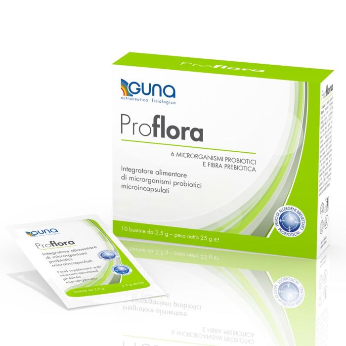 Per favorire il riequilibrio della microflora intestinale scegli l'integratore giusto: Proflora Guna contiene 6 ceppi diversi di probiotici e fibre prebiotiche, formulate con una tecnologia brevettata per garantire fermenti lattici vitali fino al loro bersaglio: l'intestino.