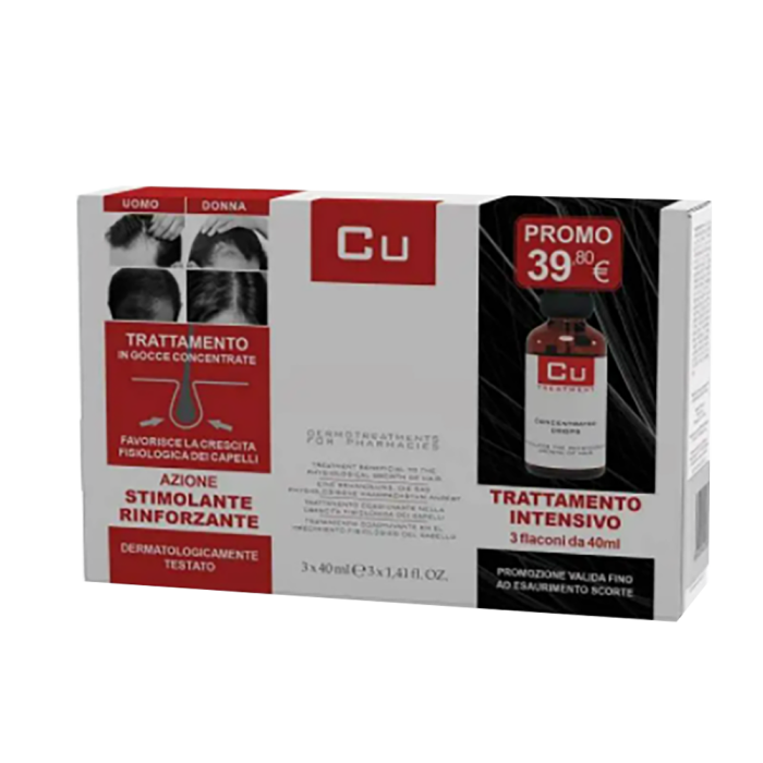 Tre confezioni da 40 ml di VITAL PLUS CU al prezzo di due. Stimola la crescita e rinforza la chioma.
