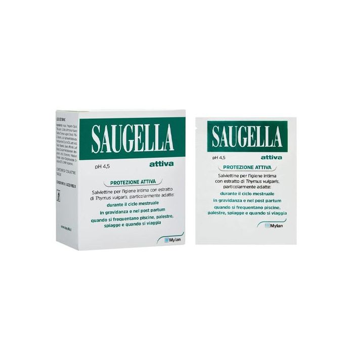 In morbido tessuto, imbevute di Saugella Attiva. Assicurano una protezione attiva nelle situazioni a rischio (durante il ciclo, nel post-partum, in luoghi a rischio quali palestre, piscine, saune). Per una detersione attiva anche fuori casa. pH 4.5