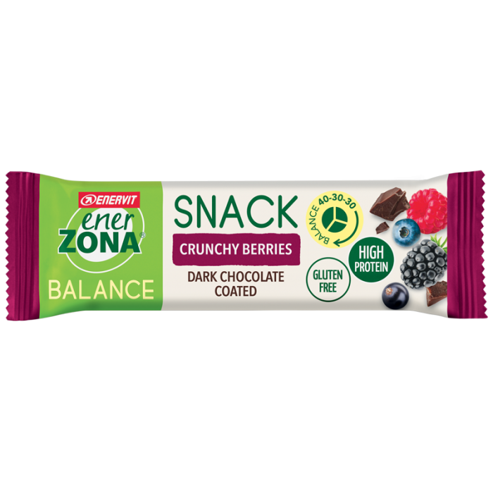 La Barretta snack 40-30-30 è al gusto cruchy berries, deliziosi frutti di bosco e cacao, ricoperta inoltre da uno strato di cioccolato fondente.